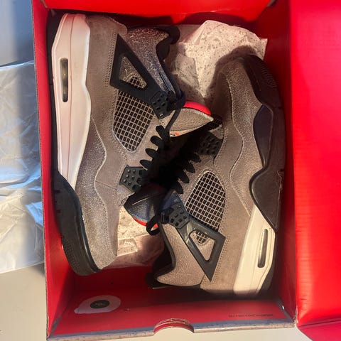 Flotte Air Jordan 4 retro, White Thunder sko, str. 39. Er kun anvendt i en kort periode pga hurtig vækst. Ny pris 3400 kr.