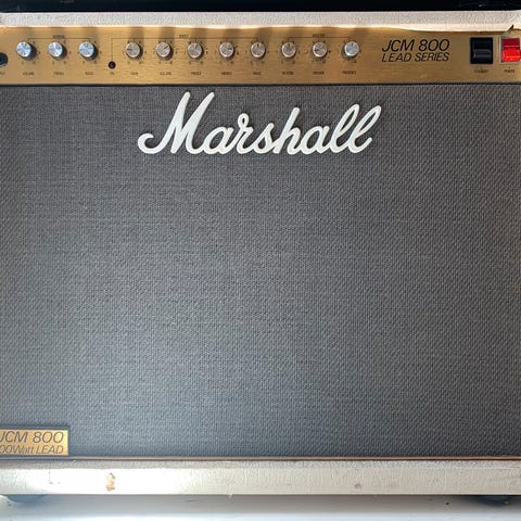 Ja den spiller sf. Helt fantastisk som den model nu gør og der ikke så meget mere at sige. Den kommer med 2 x JCM800 A+B Lead kabinetter med 4 x G12H 100 og 4 x G12T-75 enheder, begge kabs. i 8 Ohm = 400 og 300 Watts.