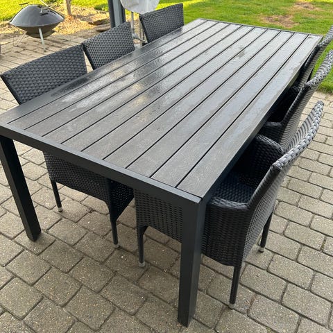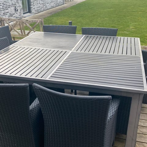 Står som ny da det aldrig er blevet brugt uden for, men har stået i en udestue i 2 år. Og så tror jeg vi har siddet i det 5 gange.