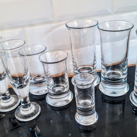 Seks fine ølglas i serien Fløjte / Flute designet af Per Lütken for Holmegaard. Glassene er i fin stand med enkelte, små brugsspor - ingen skår/revner/glaspest. H: 22 cm. Mrk. HGX.