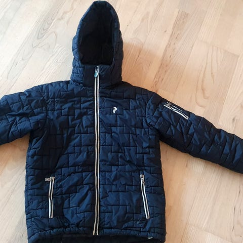 Peak Performance børn skijakke i størrelse 150, sort farve, unisex design og vandtæt materiale. Jakken har en hætte og lynlåslommer - også til liftkort