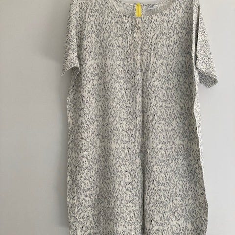 Lilla/bordeaux med struktur i stoffet. Gennemsigtige ærmer. Knapper ved håndleddet.