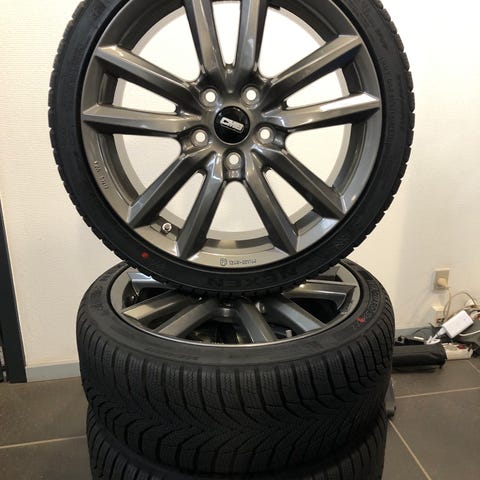 Til Mini SE sælges dette sæt nye originale 16" fælge, som bliver monteret med nye Continental-produceret, støjsvage vinterdæk 195/55-16!