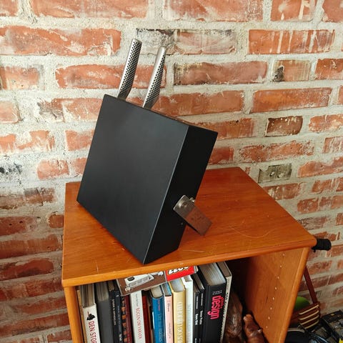 Designet sikrer god luftcirkulation og hygiejnisk opbevaring, og blokken passer til forskellige knivtyper og -størrelser. Det er en stilfuld måde at holde dine vigtigste redskaber organiseret og lige ved hånden.