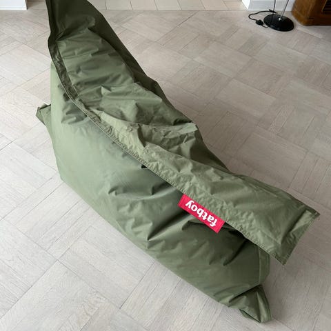 Dejlig sækkestol i rigtig god stand. I kokagråt fint velour materiale. Rigtig dejlig. Og er nem qt tørre af hvis man spilder noget på den.