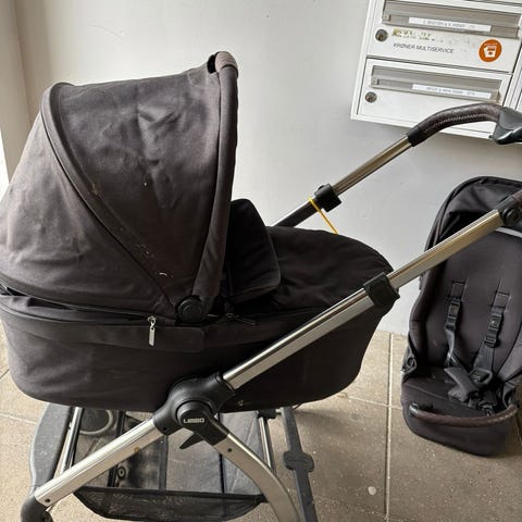 Tutek barnevogn med klapvogns del. Er brugt en del og har synlige brugsspor, men den fungere upåklageligt.
