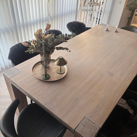 Massivt hvidolieret egetræsspisebord i rigtig god stand