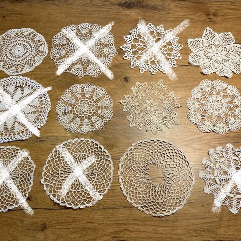 …sy, syning, korssting, sting, væve, væv, vævning, hækle, hækler, strikker, strikke, gammel, retro, 70’er, 70er, 1970erne 1970’erne, håndgerning, kniple, knipling, knippel, flakoner dessert nips, doilies doily coasters coaster drikkebrik flakon flacon mandala broderi kunst mormor stil oldemor Bordløber bord løber