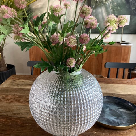 Hvid vase for Specktrum. Den er stort set ikke brugt - der har været et lille juletræ uden i tre uger, så den fremstår nærmest uden brugsspor.