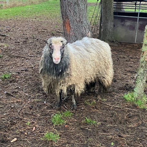 De 5 gimmere og får går med brun vædder med horn (siden 1 nov) og sælges med beige vædder så man næste år kan ilæmme med “nyt blod”.