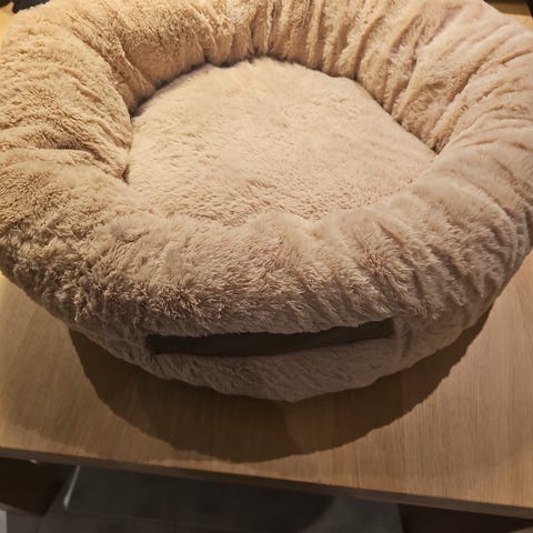 Calming Cave/doughnut hule seng til kæledyr🐾 Rund seng i mørke grå farve med blødt plys materiale. Sengen har en polstret bund og en kant med langhåret plys, der giver komfort, tryghed og varme til kæledyr. Fejlkøb! Har aldrig været brugt, da min lille hund INGEN interesse har for at prøve den. Nypris 395.-kr.