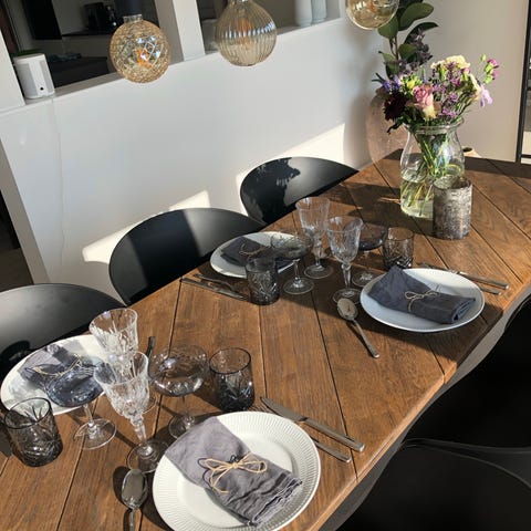 Mindre Plankebord med massive 40mm planker der er behandlet med Juncker bordpladeolie, så nemt at vedligeholde. 6 år gammelt