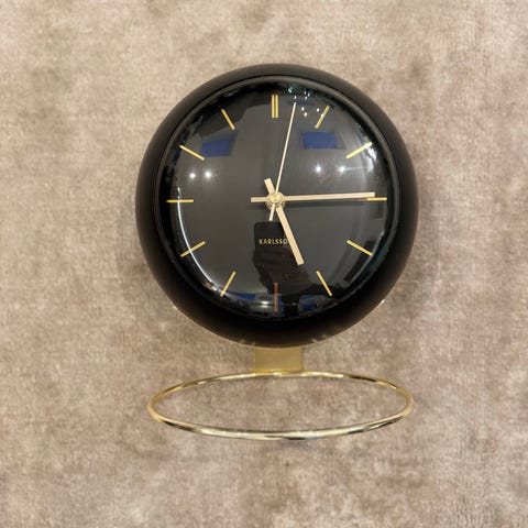 Dette Karlsson bordur har et moderne rundt design med en glat, mat overflade. Urskiven er let forsænket, hvilket giver dybde, mens de simple visere og markeringer gør det nemt at aflæse. Uret er placeret på en cirkulær fod, der tilføjer et strejf af elegance til ethvert rum. Uret er lavet af rustfrit stål.