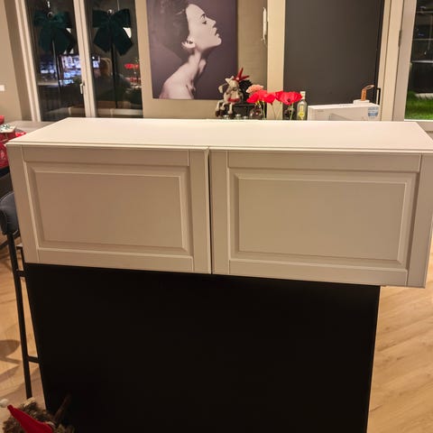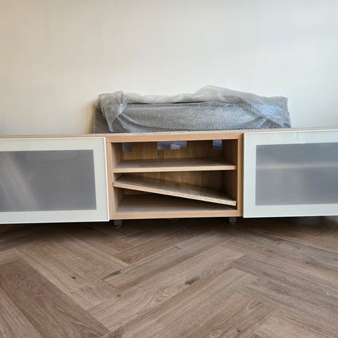 Fint Ikea bestå tv møbel i hvid. 180 x 40 x 64, nypris var 2200. Har en svag streg, som ikke ses så tydeligt (se sidste billede)