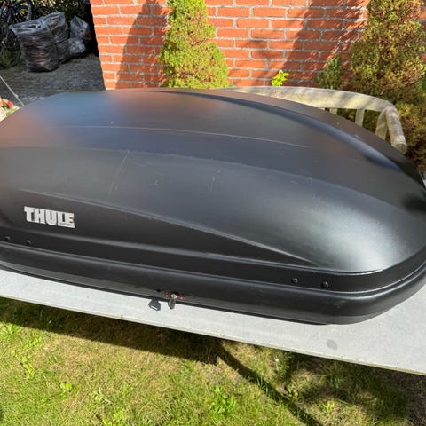 Thule Pacific 100 tagboks i grå farve. Den har en aerodynamisk form og er designet til montering på bilens tagbøjler. Indeholder beslag til montering på tagbøjler.