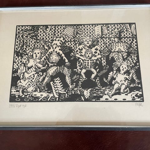 Palle Nielsen. Linoleumssnit. Signeret. Indrammet