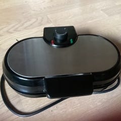 Vaffeljernet har været brugt én gang og fungerer upåklageligt. Det er pakket i original emballage. Desværre viser det sig, at min familie ikke er til belgiske vafler. Brugsanvisning og opskrift på dansk medfølger. Så vaffeljernet trænger til et nyt hjem. Måske er det lige noget for dig, hvis du fx trænger til afveksling fra æbleskiver i denne tid?