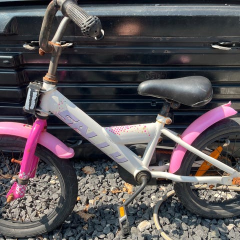 Silvercykel barn 16 tommer sølv med brun saddel og håndtag
