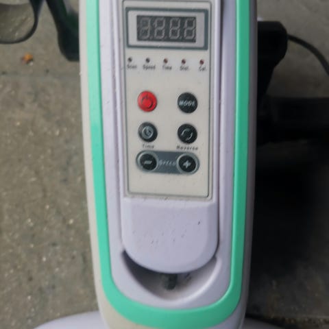 Electric pedal træningscykel med en effekt på 70W, driftsspænding på 220-240V og frekvens på 50/60Hz. Farven er hvid. En kompakt enhed designet til træning og genoptræning, der kan bruges til ben- og fodøvelser.