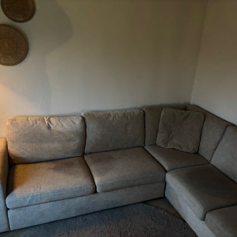 Sofaen er i god stand. mere end 20 år gammel. God at slænge sig i. Siddehøjde 40 cm. På grund af den kreative form er bredde og dybde måske målt med unøjagtighed på 1-2 cm. Nu sat 300 KR NED.