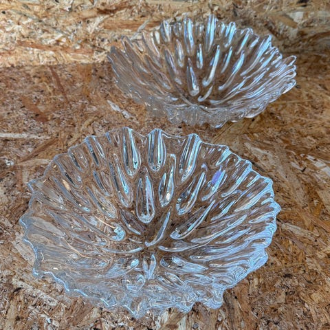 Stor Holmegaard mandelskål i klar glas, designet af Per Lütken.