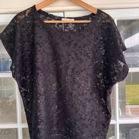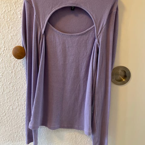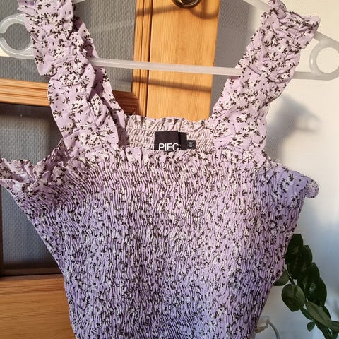 Fin slå om bluse. Med korte ærmer. Farven er bordeaux/lilla.