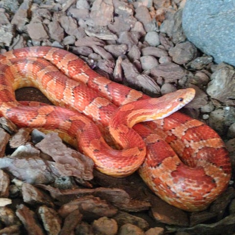 Kornsnog, ca 2.5 år og spiser ‘fuzzies’ mus. Restfoder medfølger.