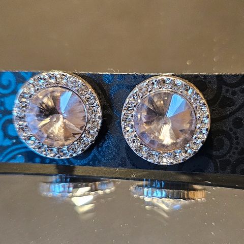 Ørestikker med lyserøde sten og plastik stik. Inkluderer en gaveæske med marmormønster i grøn og hvide nuancer. Passer til kvinder og mænd.