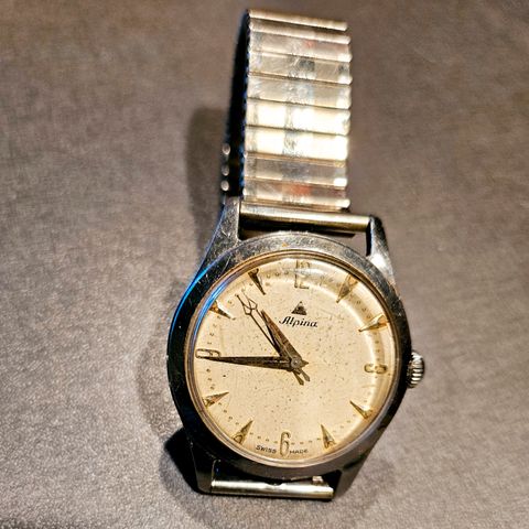 Flot off særdeles velholdt ur Alpina Standard. Mekanisk u. Ca 1960. Uret går
