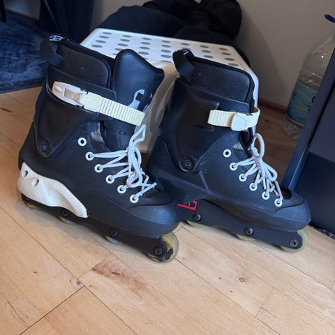 Slades rulleskøjter i størrelse 39 med hvid farve. Designet til rulleskøjteløb, velegnet til både indendørs og udendørs brug. Kun brugt én gang.
