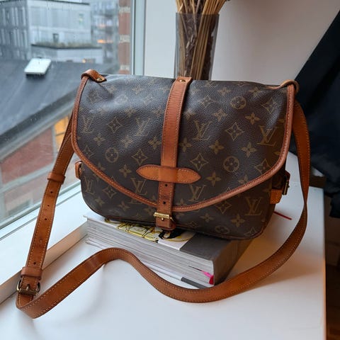 Louis Vuitton skuldertaske Saumur 43 i monogramlærred og Vachetta-læder unisex