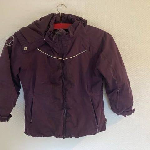 Rigtig fin og varm POMPdeLUX vinterjakke i størrelse 140 til piger. Jakken er lilla og lavet af polyester. Den har hætte og lommer, samt foret inderside med mønster.