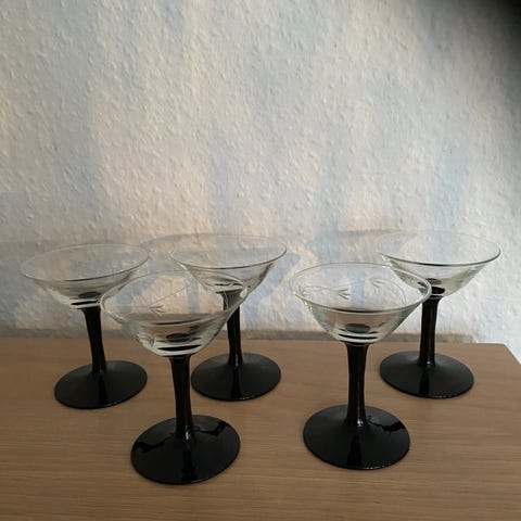5 vinglas på knap 12 cm og 4 vandglas/ølglas på knap 12 cm fra Holmegaard. Modellen hedder Ranke.