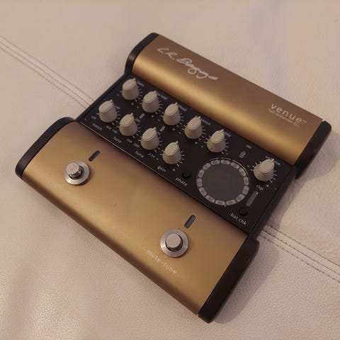 Næsten ubrugt forforstærker til guitar, mandolin, banjo og andre akustiske instrumenter med indbygget pickup-system.