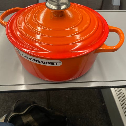Le Creuset buffetgryde i matsort støbejern med en kapacitet på 3,5 liter. Størrelse 30 CM Gryden har en rund form med to håndtag og et låg med metalknop. Indersiden er belagt med en lys emalje.