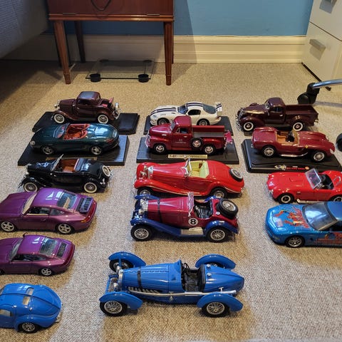 Forskellige modelbiler i størrelse 1/24 biler ( pris pr stk 150,-) og størrelse 1/18 biler ( Pris 200,-) kan afhentes eller sendes med GLS.