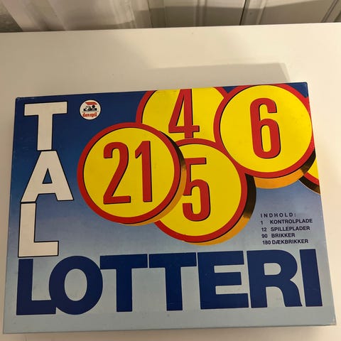 Danspil Lotto brætspil med 12 plader og spillebrikker.