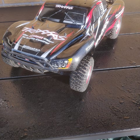 Traxxas TRX-4 fjernstyret bil i 1:10 skala med Koksgrå karrosseri. Modellen har store offroad-dæk og detaljeret undervogn. Egnet til terrænkørsel og hobbybrug.