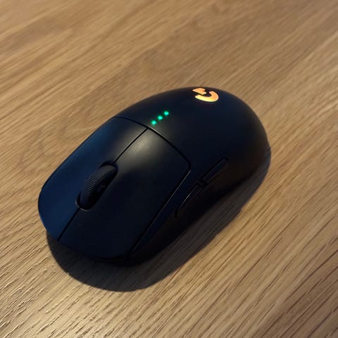 Logitech G Pro X Superlight trådløs mus med Lightspeed teknologi og HERO 25K sensor. Musen har en vægt på 102 gram, justerbar DPI, USB-C opladning, og PTFE fødder. Designet til gaming med lang batteritid op til 140 timer og powerplay kompatibilitet.