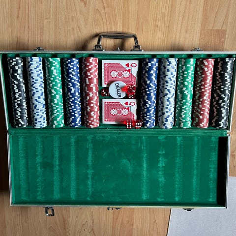 -Mangler et kortsæt, et sæt terninger og nøglerne til låsene ude på fronten (se billede 3)