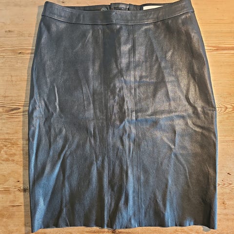 Flot brun og super blød læder nederdel fra BTF CPH med brunt foer, lommer i siden og skjult lynlås bagpå.