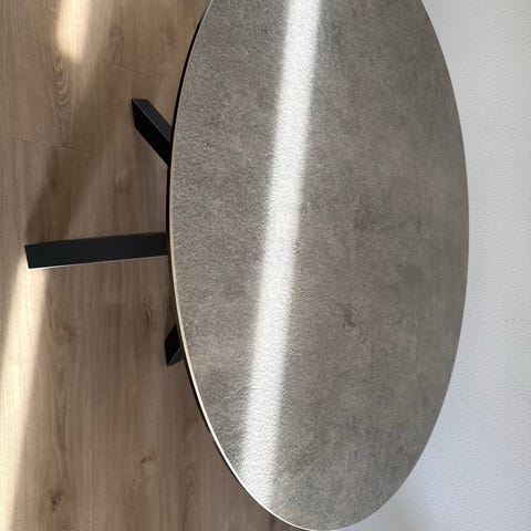I choko valnød og hvide metal ben og den flotteste buede planke kant. 😍