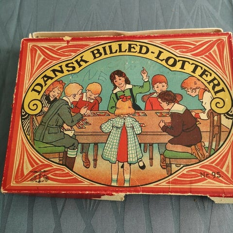 Originalt gammelt billedlotteri. Det består af 8 plader med hver 12 brikker, der mangler en enkelt brik. Bagsiden af brikkerne danner desuden billeder, med færdselsregler.