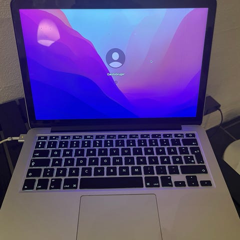 Apple MacBook Pro laptop i sølv farve. Enheden har et tastatur med dansk layout og leveres med oplader. Velegnet til daglig brug og professionelle opgaver.