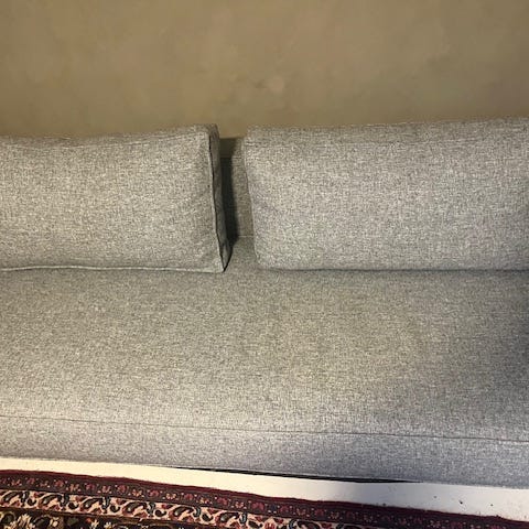 Meget nem at betjene sovesofa med opbevaringsplads til dyner/puder. Fremstår meget pæn og velholdt. Sortmeleret. Fra ikkeryger og dyrefrit hjem. Nypris 6500,-