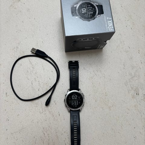 Garmin Fenix 6x pro solar titanium med metal rem og en ekstra sort silicone rem. Brugt og en lille ridse på skærmen men ingen betydning. For funktionen. Super fint ur med mange gode funktioner. Er ca. 4 gammelt. Nypris 8000 kroner