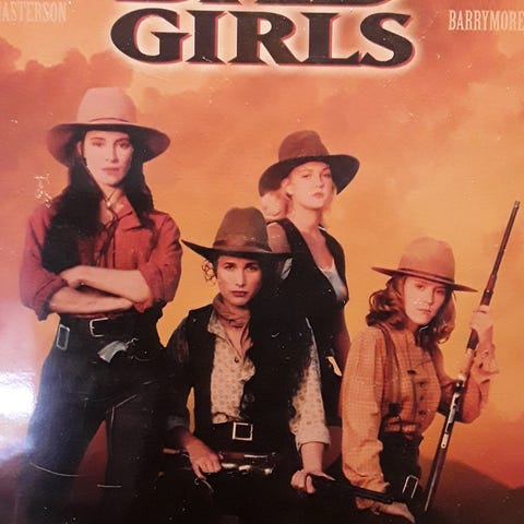 Bad Girls DVD med filmindhold. Filmen er en western med bl.a. Andie MacDowell og Drew Barrymore