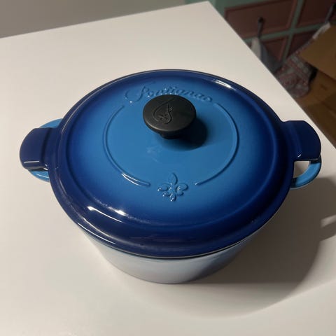 Sælger to originale Le Creuset støbejernsdele i lys/creme farve.