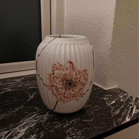 Kähler vase med dekorative striber. Vasen er velegnet til brug som dekoration i hjemmet og kan anvendes til både friske og tørrede blomster. Tørrede blomster følger med