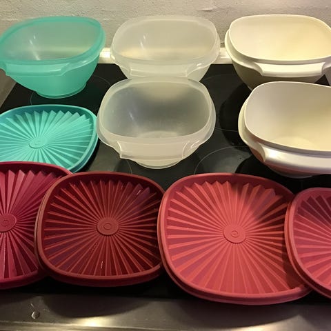 Tupperware.Pæne, brugte og velholdte. Kander pr stk 75, de to bøtter med låg samlet 50